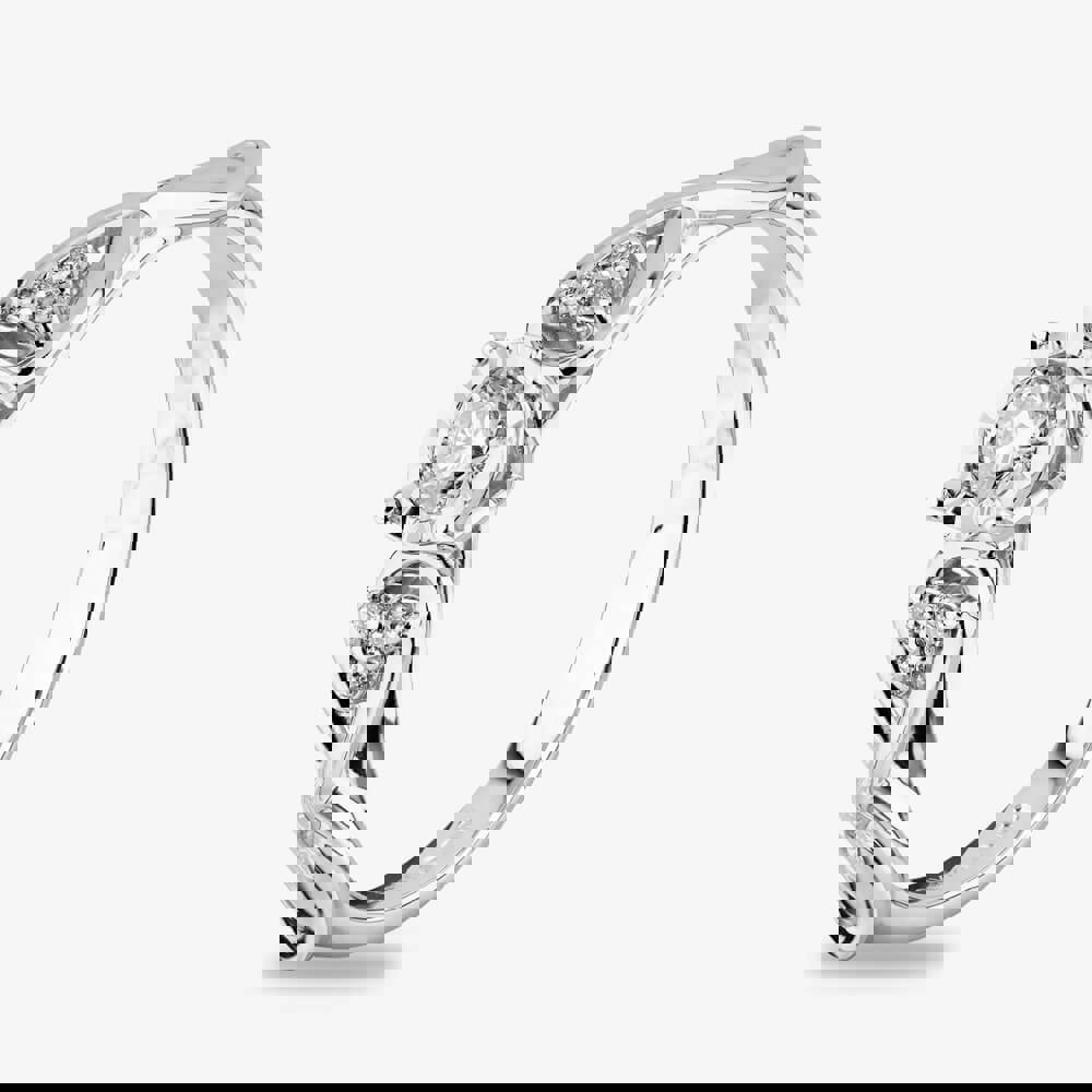 This beautiful ring is created in 9ct White Gold and features 7 diamonds with a total weight of 0. 25ct. It features a sparkling round cut centre diamond with three diamonds either side set within beautiful shoulder detailing. It has a band width of 2. 3mm.