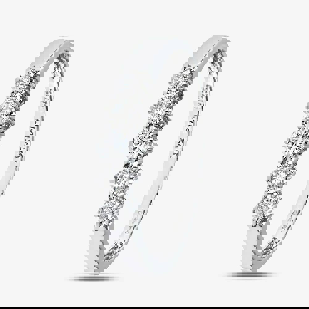 This attractive five stone ring is crafted in 9ct white gold & features brilliant cut claw set graduating diamonds which have a total carat weight of 0. 25ct. This ring is a perfect stand-alone piece or ideal for layering & combining with other rings to create your own unique look.