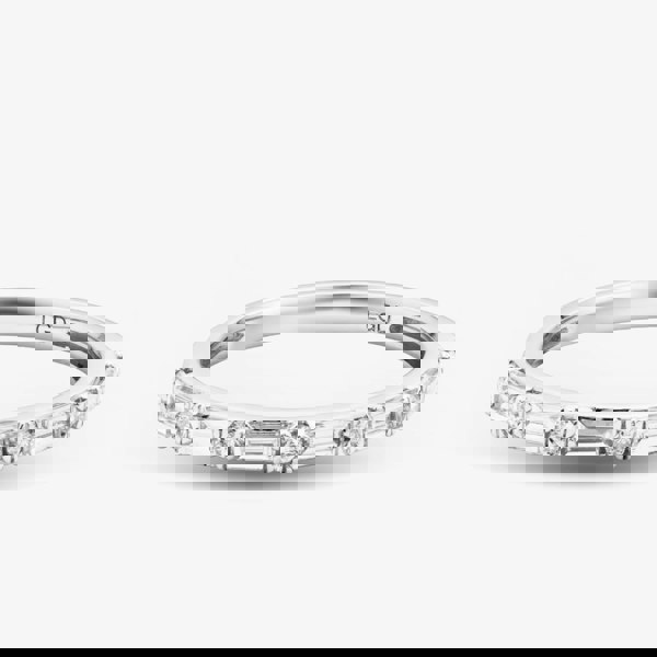 Embrace modern elegance with this 9ct White Gold Half Eternity Ring, featuring a striking combination of baguette-cut and brilliant-cut lab-grown diamonds, totalling 0. 25ct. Expertly crafted to catch the light beautifully, this ethically conscious ring offers a sleek, contemporary sparkle, a refined and timeless addition to any jewellery collection.
