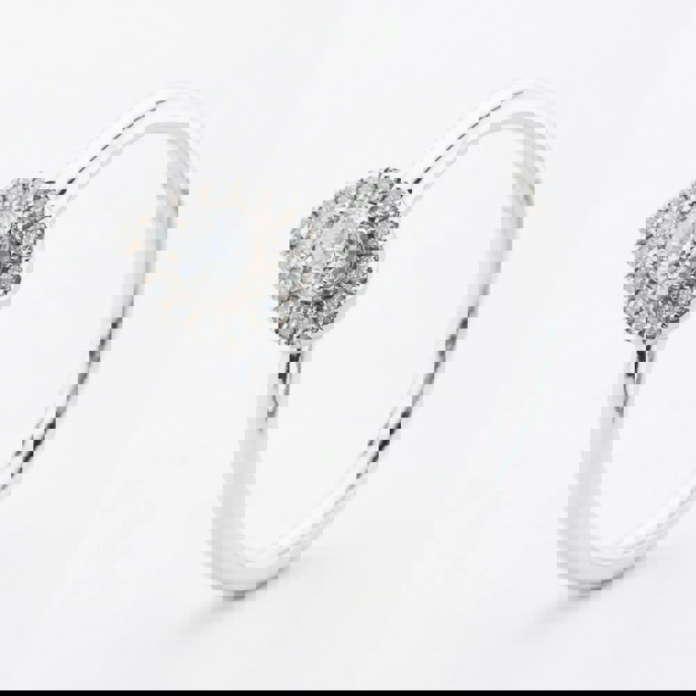 This elegant 9ct white gold ring features a stunning pear-cut diamond surrounded by a sparkling halo of smaller stones, enhancing its brilliance and allure. With a total diamond weight of 0. 30ct, this timeless design combines classic sophistication with modern elegance—perfect for marking a special occasion or adding a touch of luxury to everyday wear.