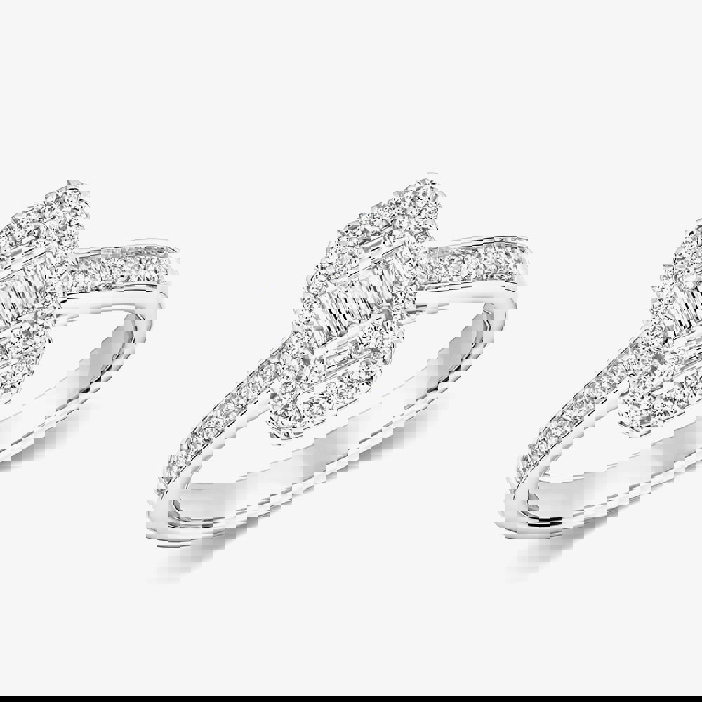 This exquisite 9ct white gold diamond cluster ring features a centre of baguette-cut white diamonds, surrounded by brilliant-cut diamonds along the edges and shoulders. Timeless and elegant, it offers a sparkling statement perfect for engagements, special occasions, or treasured everyday wear.