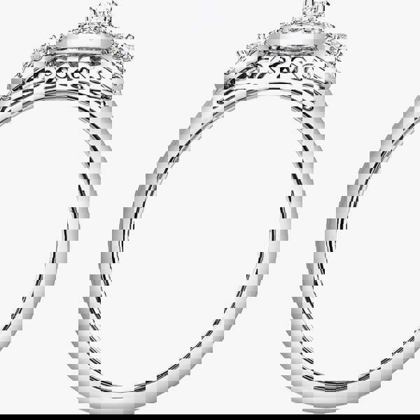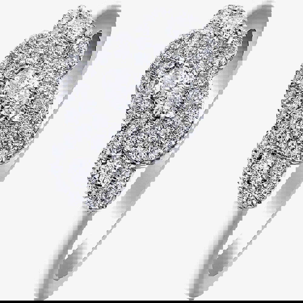 Created in 9ct White Gold, this triple cluster ring features an oval cut 0. 08ct diamond in the centre with two diamonds either side, surrounded by halos of a further 52 diamonds, giving a total weight of 0. 333ct.