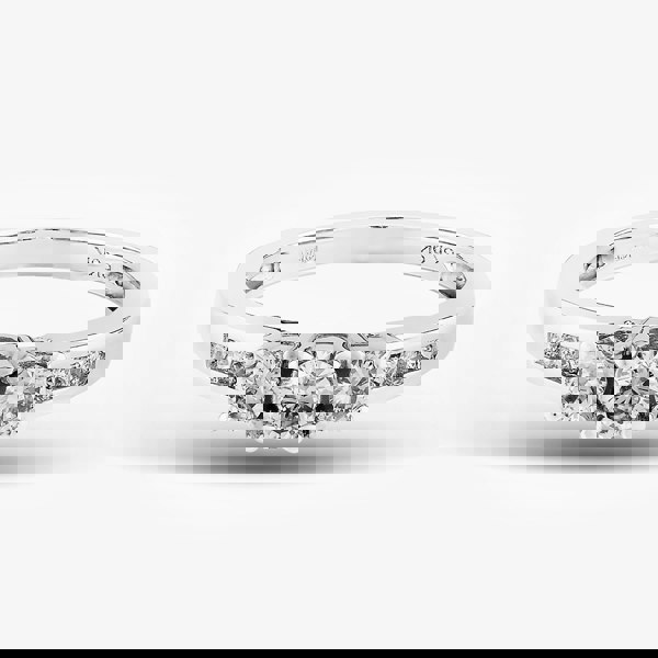 Crafted with precision in lustrous 9ct white gold, this ring effortlessly blends classic charm with modern sophistication. It's a versatile choice, ideal for engagements, anniversaries, or simply as a daily reminder of your cherished moments.