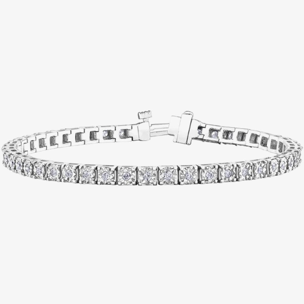 Set with a clean line of diamonds, the T.H.Baker BR988W/200-9 tennis bracelet brings a refined finish to evening looks and special occasions. Crafted in 9ct white gold, it is adorned with 54 round cut white diamonds with a total weight of 2.00ct, creating a bright, continuous sparkle along the wrist.