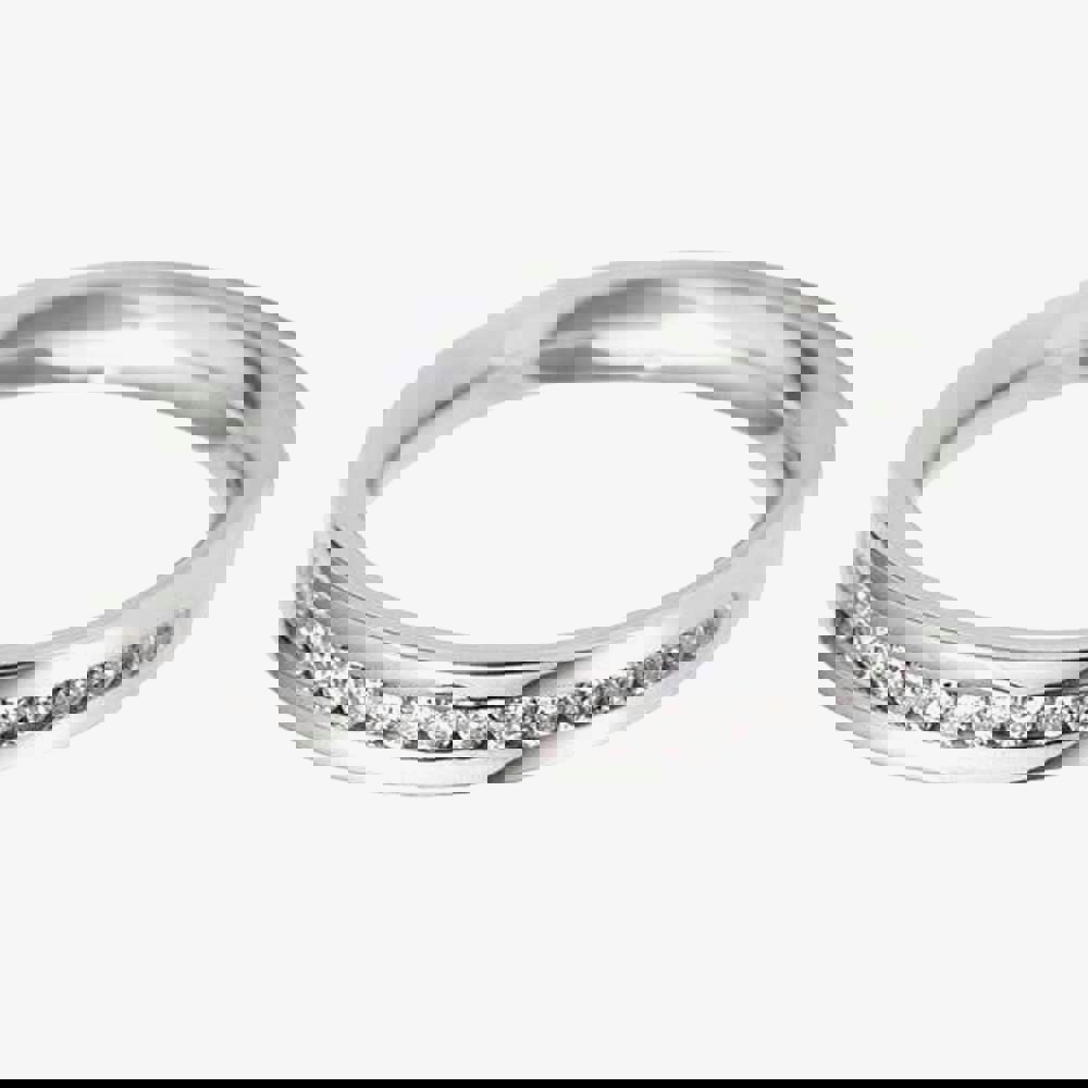 A beautifully sparkly wedding ring that makes a standout addition to any ring finger. Expertly crafted in 9ct white gold, featuring a channel of dazzling diamonds in an attractive flat court shape finish. Our range of wedding rings encompasses all the needs of the modern market place, that is style, sophistication and most of all quality at a very reasonable price. Every wedding ring is accompanied with a presentation box and is available for dispatch in 24 hours.