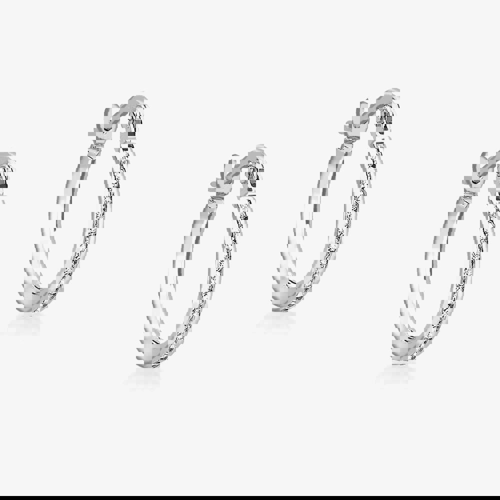 Crafted from 9ct white gold these stunning earrings from the T H Baker Collection boast an attractive Cubic Zirconia set design. An adorable pair of hoops that are sure to compliment any outfit.
