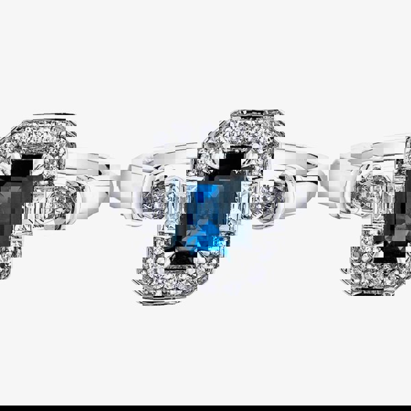 Created in 9ct White Gold, this beautiful cluster ring features a sapphire stone and 16 diamonds in total. The octagon-cut sapphire is surrounded by sparkling diamonds, with further diamonds set within the shoulders, giving a total weight of 0. 08ct.