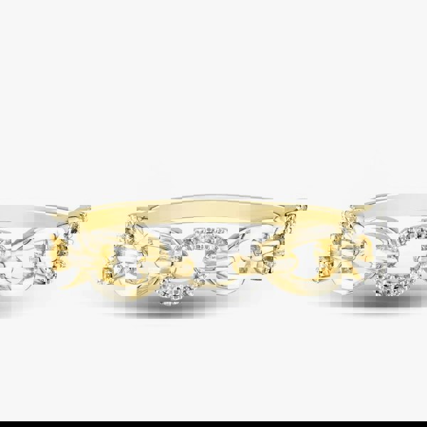 This elegant 9ct yellow gold ring features a stunning 0. 05ct brilliant-cut diamond, beautifully set in an oval link design, creating a timeless and sophisticated look.