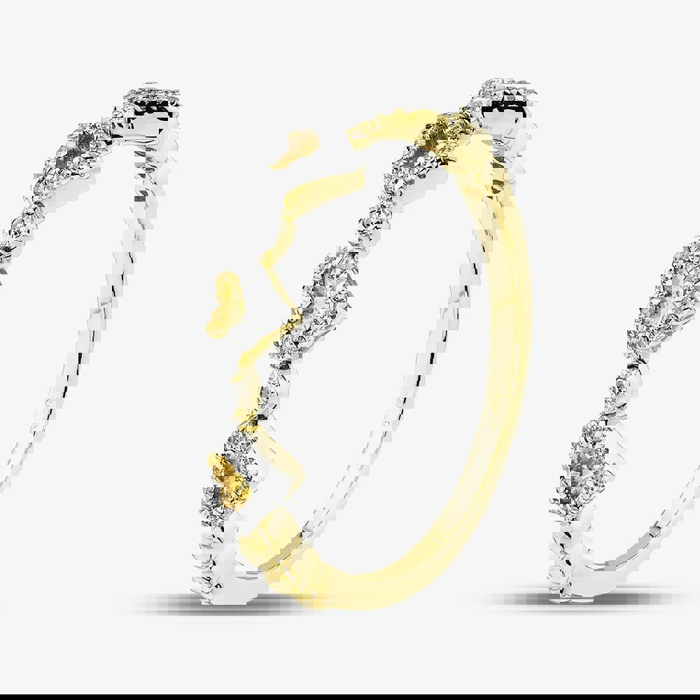 Crafted in 9ct Yellow Gold, this charming ring features multiple heart motifs adorned with pave-set brilliant cut diamonds. With a total diamond weight of 0. 10ct, it adds a touch of sparkle and romance to any look.