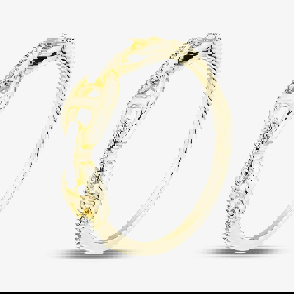 Exude elegance with the 9ct Yellow Gold 0. 10ct Diamond Interlocking Design Ring, featuring open link patterns accented with brilliant-cut diamonds totalling 0. 10ct. Expertly crafted for a refined finish, this dress ring adds sparkle and sophistication to any outfit, making it a timeless addition to your jewellery collection.