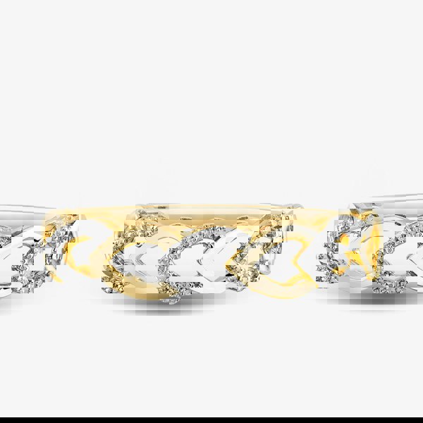 An attractive ring that has been created in 9ct yellow gold and features seven open heart motifs which are alternating plain and diamond set. With a total diamond carat weight of 0. 10ct this modern take on a traditional design is the perfect choice for your loved one.