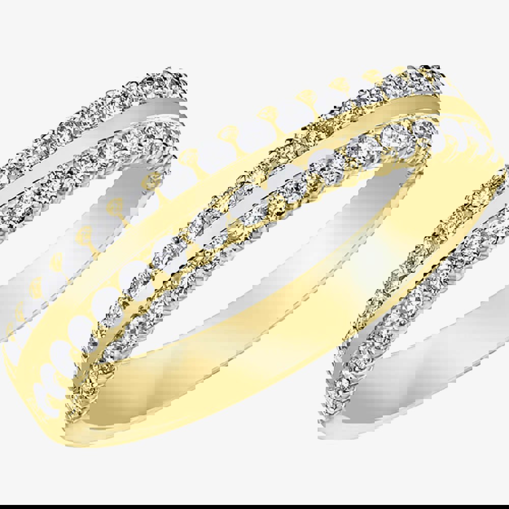 Created in 9ct Yellow gold, this beautiful half eternity ring features a two row design and is set with 50 diamonds with a total carat weight of 0. 25ct.