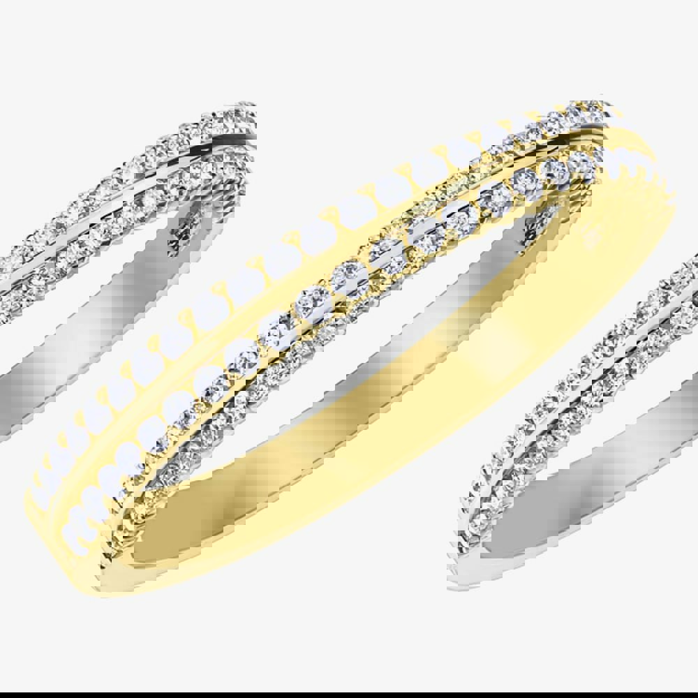 An elegant half eternity ring crafted from 9ct yellow gold and features an eye catching two row design of claw set round cut diamonds that have a total carat weight of 0. 50ct. This ring sparkles & catches the light beautifully.