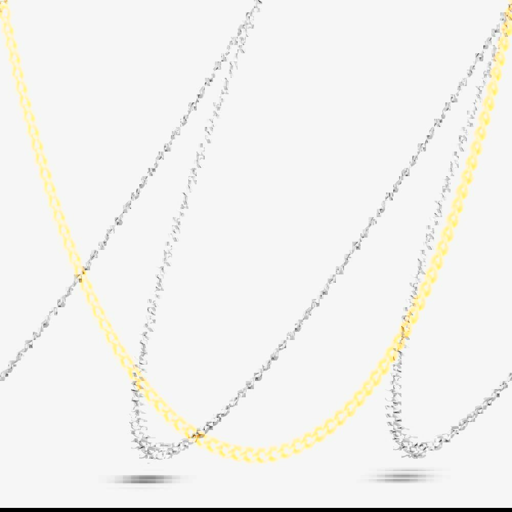 This 20 inch flat curb chain is created in 9ct Yellow Gold. It has a weight of 2g and a width of 1. 5mm.