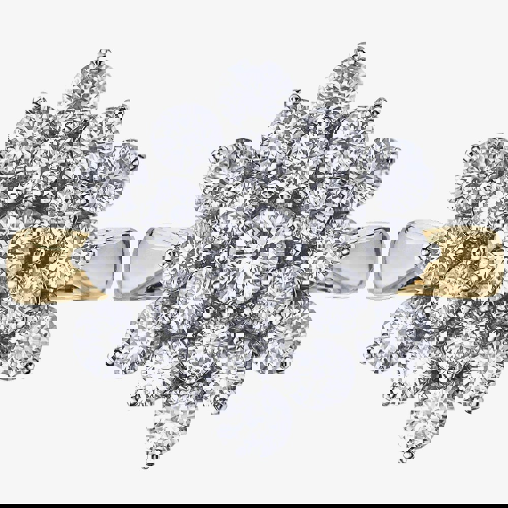 This beautiful cluster ring features a 9ct Yellow Gold band and 19 round-cut diamonds positioned in a flower design set in 9ct White Gold, with a total weight of 2. 00ct.