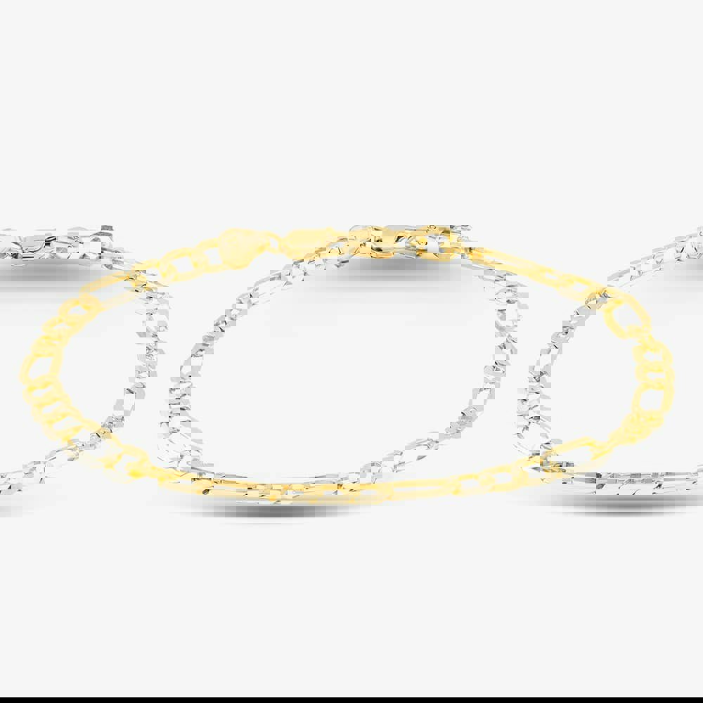 A classic chain silhouette with a polished finish, the T.H.Baker Figaro chain bracelet brings a refined touch to everyday styling. Crafted in 9ct yellow gold, it uses the distinctive Figaro pattern of alternating short and long links for a clean, confident look that sits comfortably alongside a watch or other bracelets.