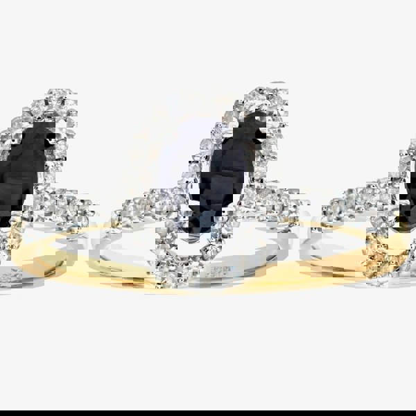This traditional cluster ring is crafted in 9ct yellow gold & features an oval sapphire centre stone with a sparkling diamond halo surround which has a total carat weight of 0. 25ct. This ring is a perfect stand-alone piece or ideal for layering & combining with other rings to create your own unique look.