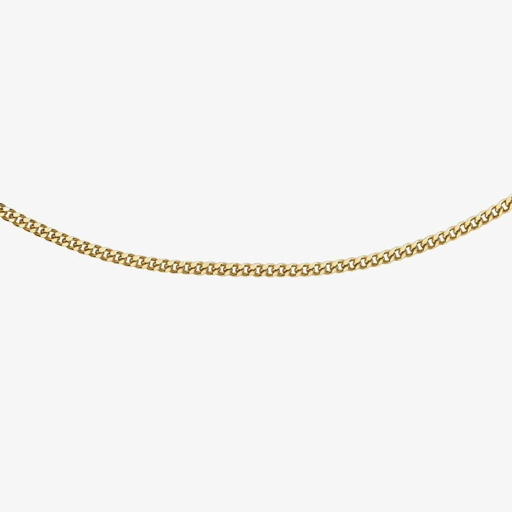 This 20-diamond cut curb chain is delicately crafted from 9ct yellow gold, measures 20 inches (51cm) in length, and is securely fastened with a spring ring clasp.