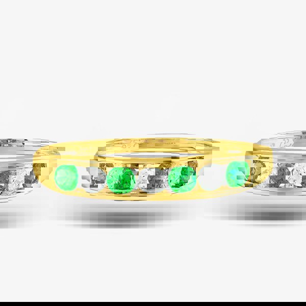 This beautiful green & clear cubic zirconia half eternity ring is created in 9ct yellow gold. This half eternity ring features sparkling alternating green & clear cubic zirconia stones in a tension setting. The ideal half eternity or dress ring for that special someone.