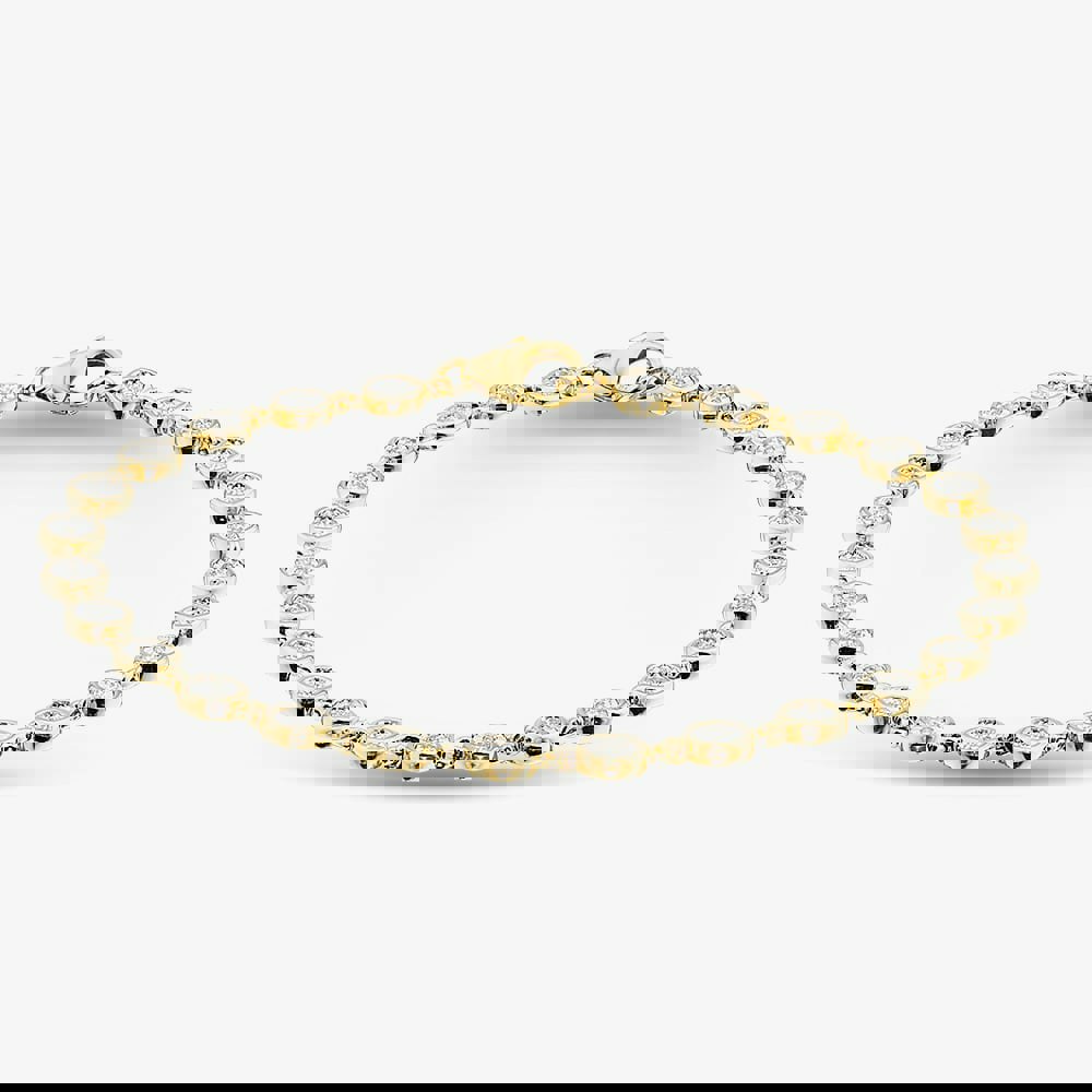 Bring a refined finish to everyday styling with the T.H.Baker THB45090-50 (YG) diamond bracelet. Crafted in 9ct yellow gold, it pairs a warm gold tone with the crisp sparkle of white diamonds for a clean, contemporary look.
