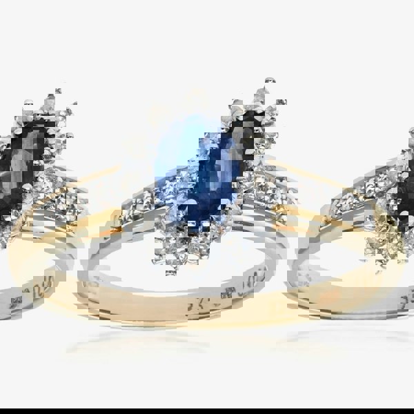 This traditional cluster ring is crafted in 9ct yellow gold & features an oval tanzanite centre stone with a sparkling diamond surround & shoulders design which have a total carat weight of 0. 10ct. This ring is a perfect stand-alone piece or ideal for layering & combining with other rings to create your own unique look.