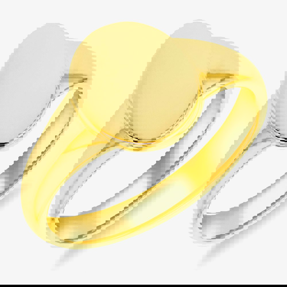 Offering the best of classic design, the Gold Plated Sterling Silver Oval Signet Ring is a must-have. Made from yellow gold plated sterling silver, this oval signet ring has a 2. 5mm ring shank and 9mm x 10. 7mm ring face.