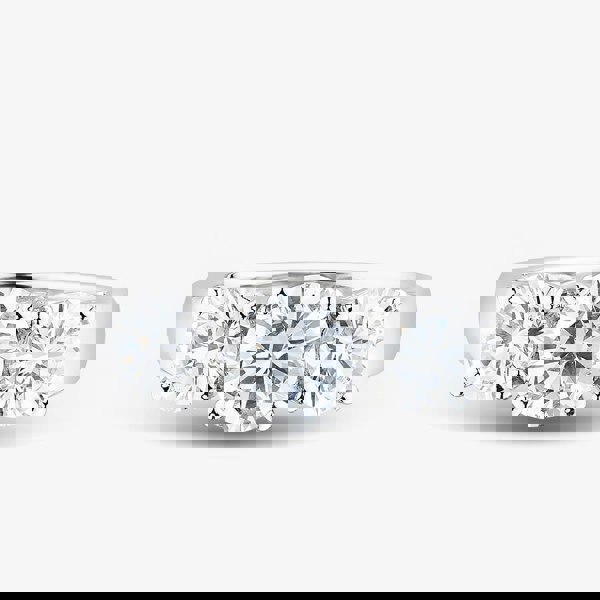 Experience refined elegance with this Platinum Three Stone Diamond Ring, featuring three lab-grown brilliant-cut diamonds, with a larger centre stone, totalling 2. 00ct. Each diamond is set in a secure four-claw setting to maximise sparkle. Crafted in lustrous platinum, this ethically conscious ring embodies modern luxury and timeless sophistication, a perfect celebration of enduring love.