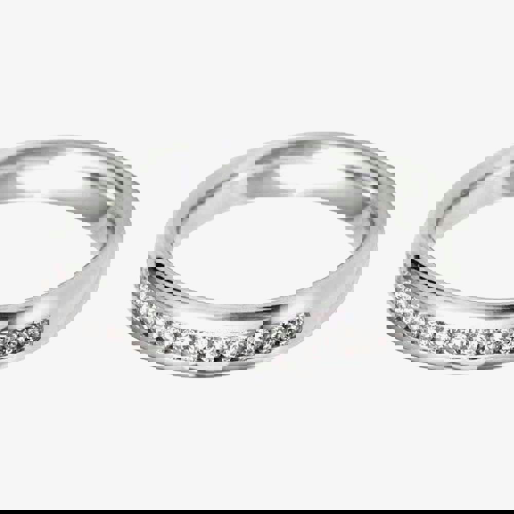 As the top of the line metal for wedding bands, platinum is at the forefront of beauty and quality, this elegant 3mm diamond set wedding band is no exception. The bright and durable metal accentuates a channel of dazzling diamonds with a stylish court shaped finish. Featuring brilliant cut diamonds with a total weight of 0. 22ct-0. 29ct, colour H and clarity SI.