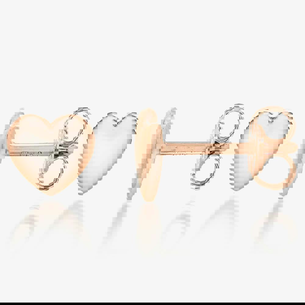 Crafted from rose gold plated sterling silver these stunning earrings from the T H Baker Collection boast an attractive heart shaped design. An adorable pair of studs that are sure to add a feminine touch to any outfit.