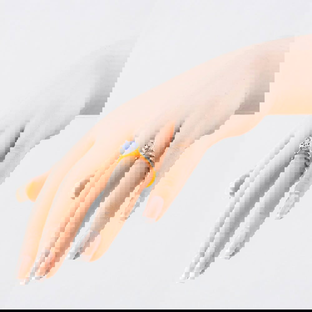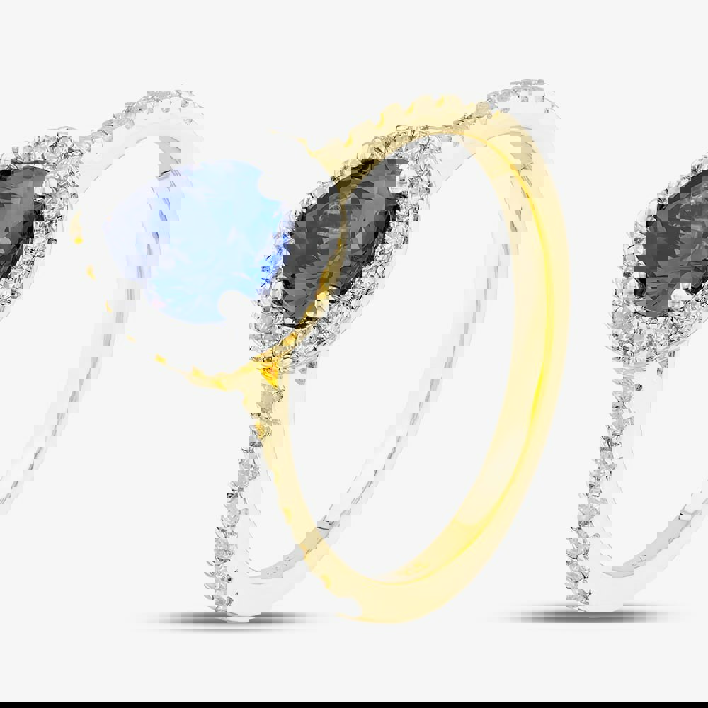 A sleek sterling silver half eternity ring featuring striking blue baguette-cut cubic zirconia stones, elegantly alternating with brilliant-cut white cubic zirconia stones. This modern design offers a vibrant pop of colour paired with timeless sparkle.