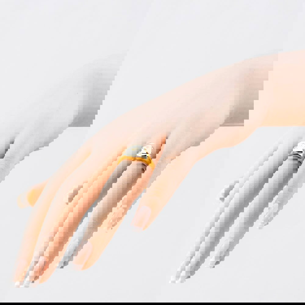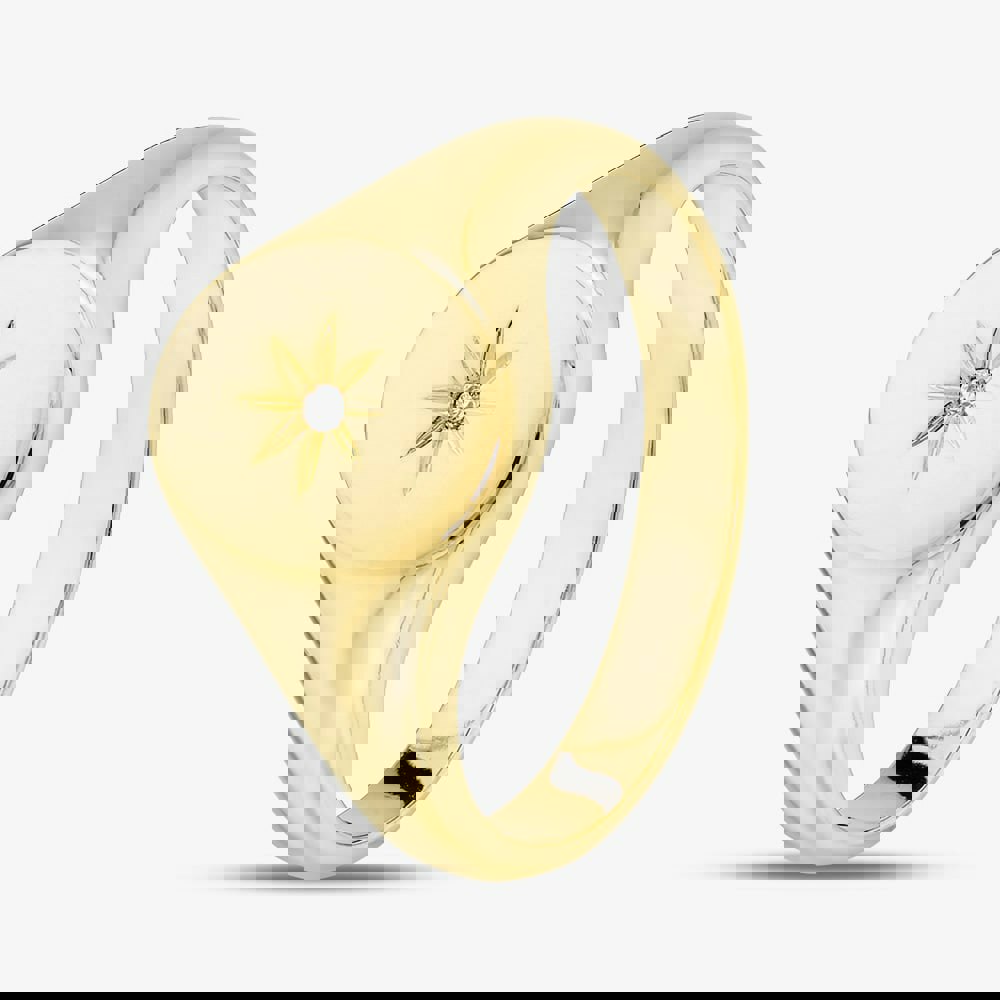 A sleek gold plated sterling silver oval signet ring featuring a white cubic zirconia set in the centre, forming a radiant star design for a modern yet timeless statement piece.