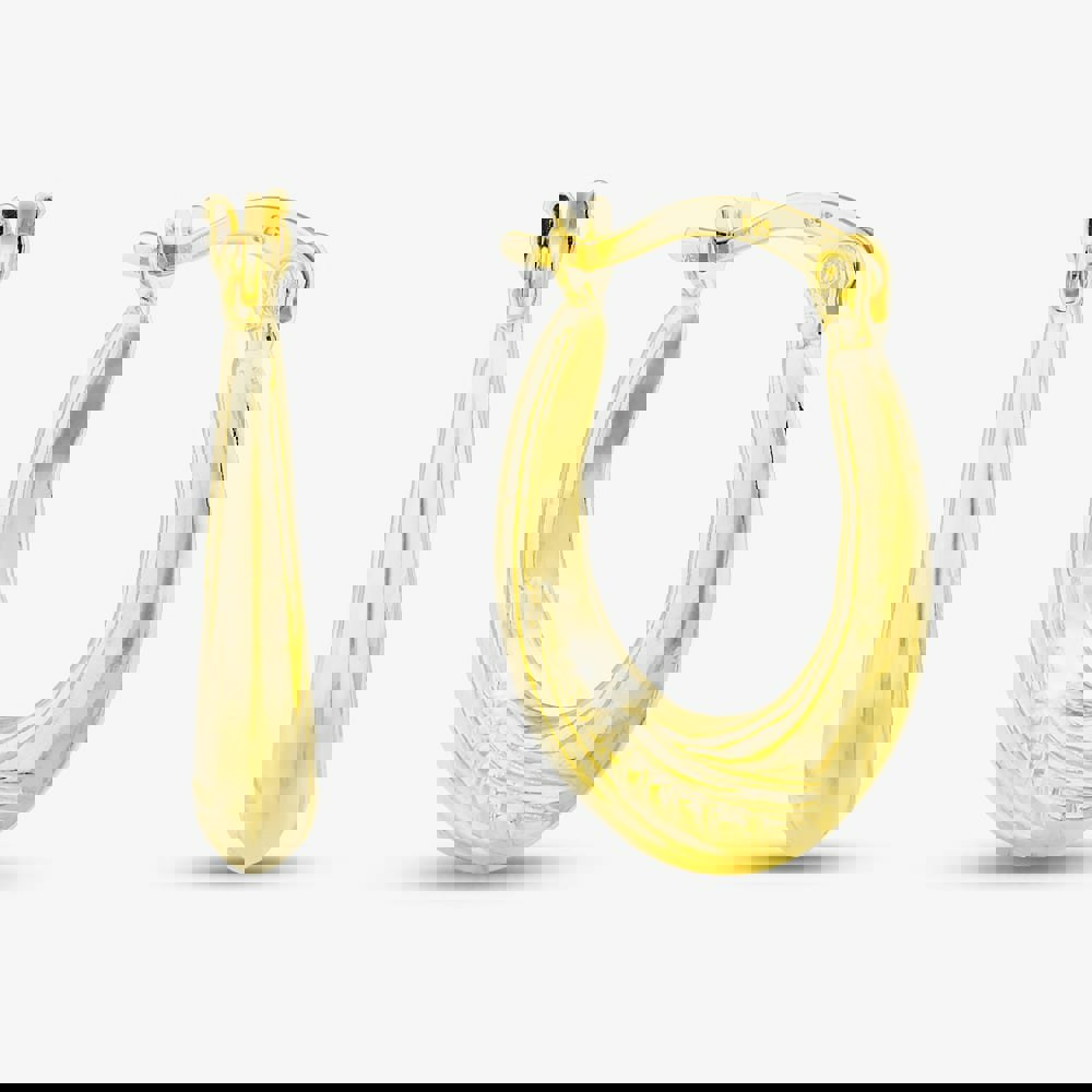 Add a warm glow to your look with these stunning gold-plated sterling silver oval creole hoop earrings. Their timeless shape and polished finish bring effortless elegance, perfect for day-to-night wear. Lightweight and versatile, they are the must have statement piece to elevate any outfit.