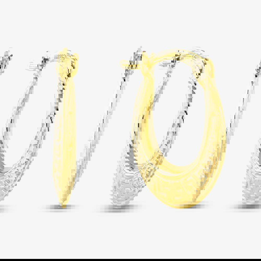 Add a touch of golden elegance to your look with these beautifully crafted gold-plated sterling silver oval creole hoop earrings. Featuring a sleek oval shape and a refined patterned finish, they blend timeless creole style with modern sophistication. Lightweight, radiant, and effortlessly chic, perfect for elevating any outfit, day or night.