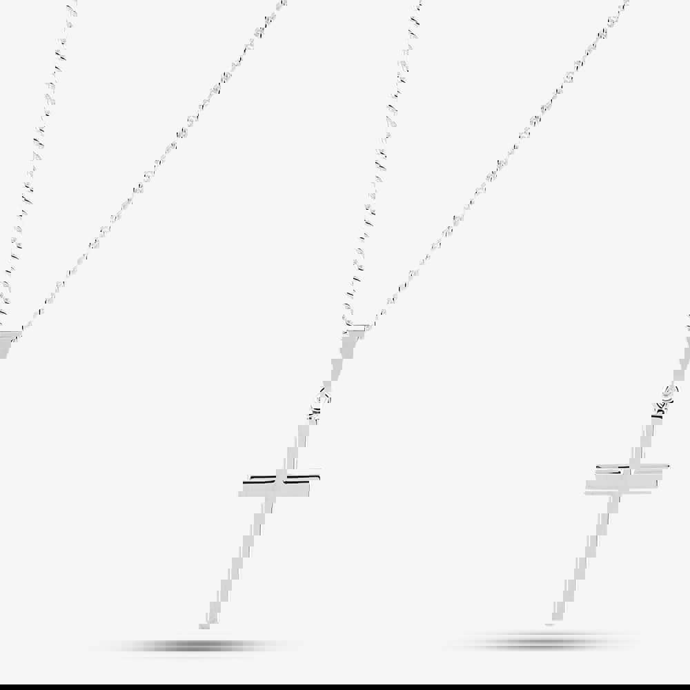 This simple cross pendant is made from sterling silver and suits any style.