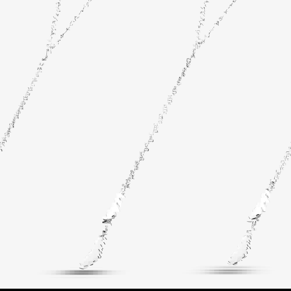 A stylish sterling silver necklace featuring two plain heart-shaped droppers, each elegantly hanging from its own delicate chain, all connected to a fine trace chain. A simple yet sophisticated design for versatile wear.