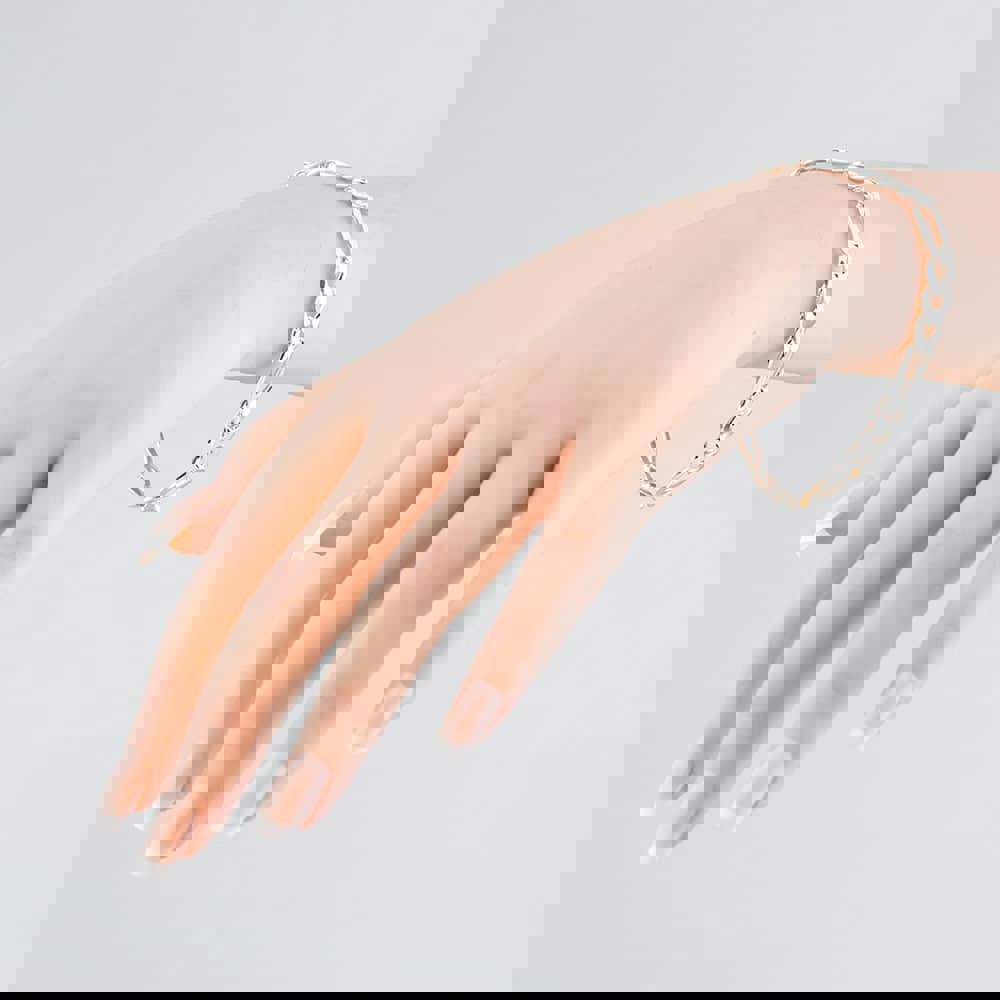 Designed with a secure lobster-claw clasp, it offers a straightforward, polished option for wearing solo or alongside a watch and other bracelets. The silver colour keeps the look versatile, while the 20cm length and 6.5mm width give it a confident presence without feeling overstated.