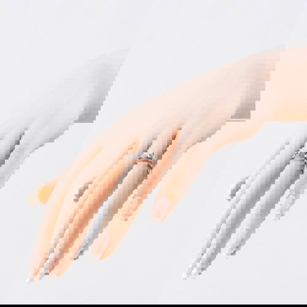 Wear it alone for a subtle statement or stack it with other rings to build a layered finish that still feels considered. The curved shape sits neatly on the finger, making it a natural choice for everyday outfits as well as more polished occasions.
