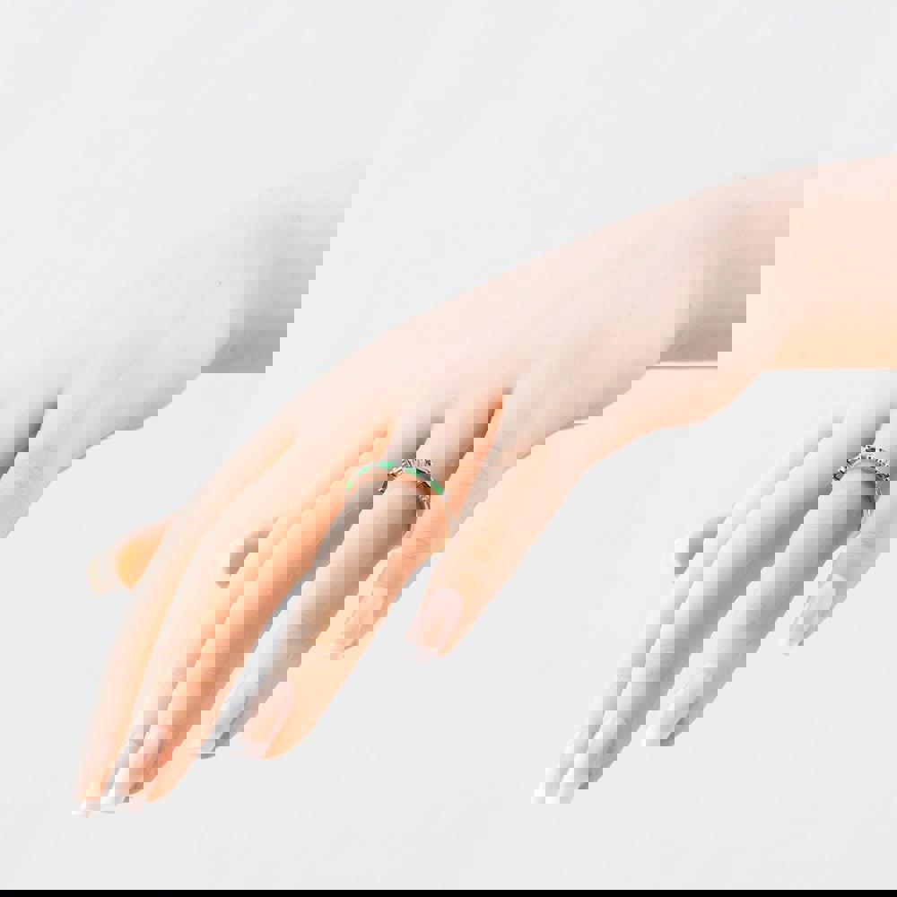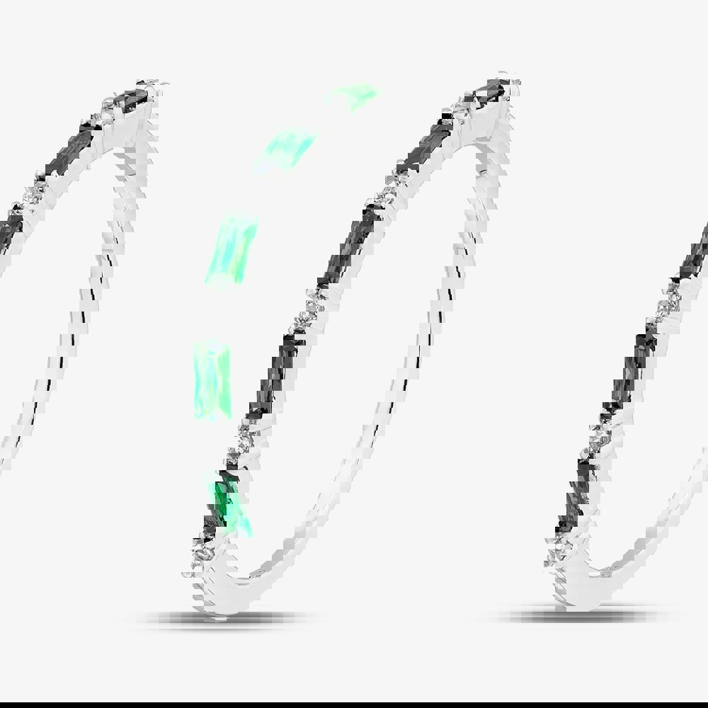 A refined pop of colour meets classic sparkle in the T. H. Baker Sterling Silver Green & White Cubic Zirconia Half Eternity Ring S2208. Crafted in sterling silver, this half eternity style is set with alternating white and green cubic zirconia stones for a crisp, light-catching finish. The balanced colour contrast brings a fresh twist to a timeless silhouette, making it an easy choice for everyday wear or for adding a polished accent to occasion looks.