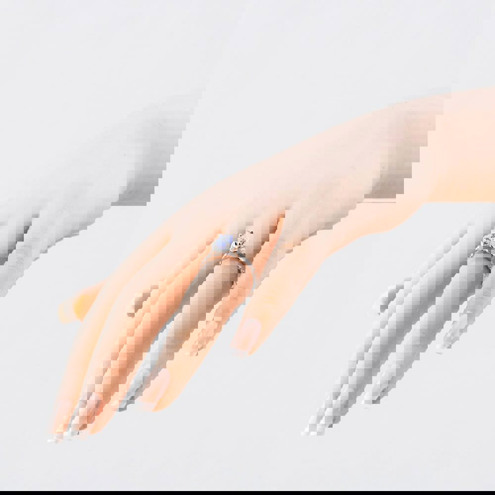 Further white cubic zirconia stones continue along the shoulders, adding extra sparkle and a polished finish from every angle. With its balanced proportions and luminous contrast, it suits both special occasions and everyday styling.