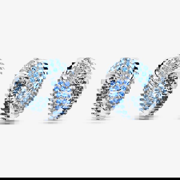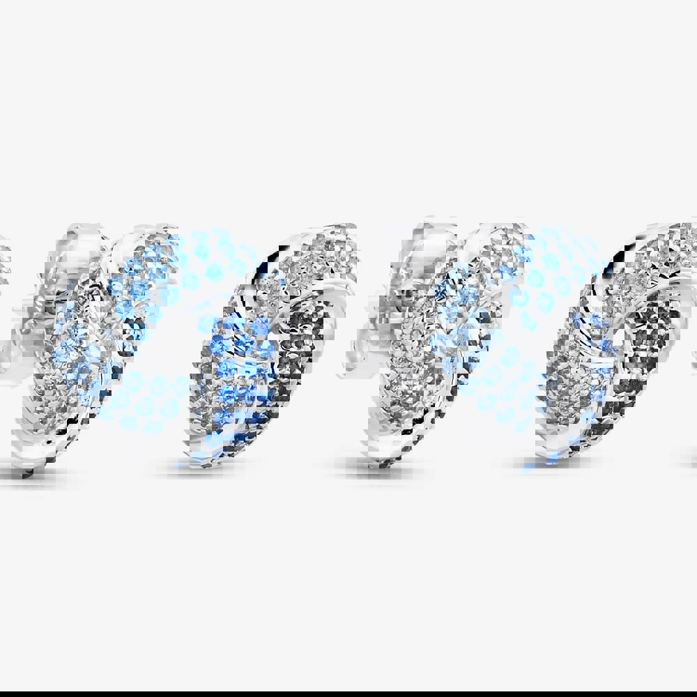 Crafted from high-quality sterling silver, these studs boast a brilliant shine thanks to their rhodium plating. This precious metal coating not only enhances their lustre but also provides excellent protection against tarnish and scratches, ensuring lasting beauty. The captivating knot design is entirely covered in dazzling, individually set blue cubic zirconia stones. The intricate pave setting ensures maximum brilliance, creating a continuous surface of vibrant blue sparkle that beautifully catches the light.
