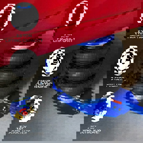 From T-mech, this 3.5T Long Lever Handle Air Bag Jack is built for fast, controlled lifting in a garage or mechanic shop. Designed to connect to a compressor, it uses a triple air bag system to raise vehicles efficiently, helping to reduce the effort associated with traditional jacks.