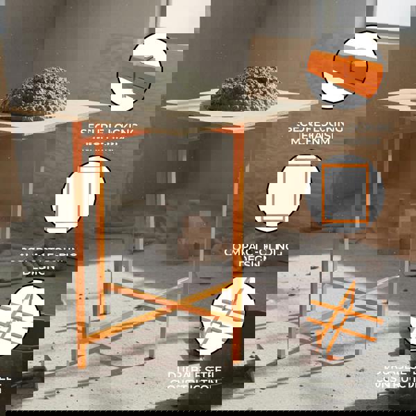Made from powder-coated steel with a vibrant orange finish, each stand is built for durability and day-to-day stability. Non-slip plastic feet help keep the frame steady while protecting surfaces and equipment, and a locking mechanism holds the stand firmly in both open and closed positions for secure use and safer handling when folded away. The foldable design also makes transport and storage more straightforward between jobs. Compatible with boards measuring 600mm x 600mm, this set provides flexible coverage across your working area.
