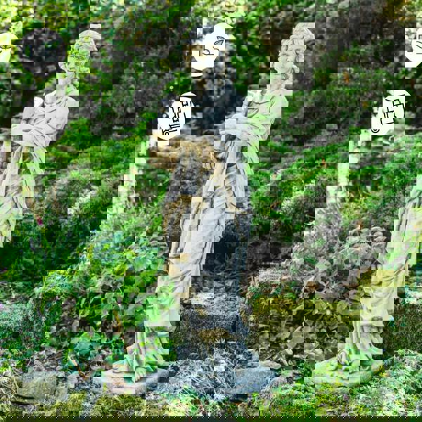 Superbly cast, exceptionally beautiful statue featuring a woman holding a musical instrument with exceptionally detailed facial expressions, folded Greek style robe. An adorable piece of garden art can be installed on pedestal in conservatories, classy and elegant gardens or reception areas or any other commercial premises. Truly classic antiquity would look fantastic at any environment - you will certainly not be disappointed. Female statue represents absolutely outstanding value for a heavy, solid classic sculpture. Cast to be a muse and inspire!