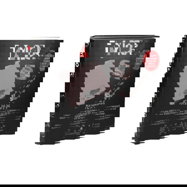 This three-piece gift set from Taylor Pro provides precision whether you're cooking, baking or barbecuing. It consists of a digital food probe thermometer, a 24-hour digital kitchen timer and a set of digital scales - all featuring an on-trend rose gold finish. Accurately weigh dry and liquid ingredients with the scales. They're designed to reduce mess and improve hygiene. The clever Touchless Tare technology allows the display to be sent back to zero with a simple hand wave, while the stain-resistant glass platform can be wiped clean easily after use. With its instant-read sensor, the thermometer provides accurate temperature readings in °C and °F. It's ideal for ensuring meat, fish and poultry are safely cooked, and is handy for jam and sweet making too. The digital kitchen timer features a 24-hour time range, as well as a useful memory recall function. It also features a built-in magnet, a stand and a large screen, so it can easily be displayed in the kitchen. Includes a 20-year guarantee. Timer and thermometer: Five year guarantees