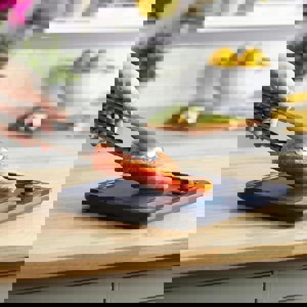 Did you know bacteria can double on an untreated surface in just 20 minutes? It's scary, but it's true. The good news is that you can battle those little beasties with the help of these antibacterial food scales from Taylor Pro. These plastic scales are treated with a food-safe antimicrobial additive, which inhibits the surface growth of mould and bacteria. They're ideal for hygiene-conscious home chefs who want a little extra peace of mind. And because they help curb the germs that cause stains and odours, they're really easy to keep clean and fresh too. Hygiene aside, they're the same kind of high-quality, accurate weighing scales you expect from Taylor. These large display kitchen scales have a backlit LCD screen, with big, distinct numbers that are easy to read. They feature an innovative dial control, which makes it simple to select dry or liquid units (grams, pounds / ounces, millilitres and fluid ounces). Press the dial to activate the tare feature, which instantly zeroes the display – great for discounting container weights or weighing multiple ingredients in the same bowl. A separate "hold" button keeps the weight on the screen for easy meal planning. These easy-read kitchen scales are made of robust ABS plastic. They require three AAA batteries. Includes a twenty-year guarantee.