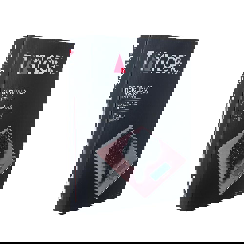 Leave no ingredient inaccurately measured with these stylish Taylor Pro glass platform digital food scales. They feature a rose gold-coloured glass surface that's totally flat, food safe and fantastically on-trend. Place your dry ingredients on this shiny surface to weigh them - either loose or in a measuring bowl. Because it's stain resistant and easy to wipe clean, you can measure fruits and veggies directly on the surface. For powdered baking ingredients, like flour and sugar? The 17 x 23 cm (6½ x 9 inch) platform is ideally-sized for bowls and containers. These digital kitchen scales have tare functionality too, so you can return the measurement back to zero with the touch of a button. This makes it easy to discount the weight of measuring bowls to weigh just the ingredients you've got in them, or for weighing multiple ingredients in just one bowl. Includes a twenty-year guarantee.