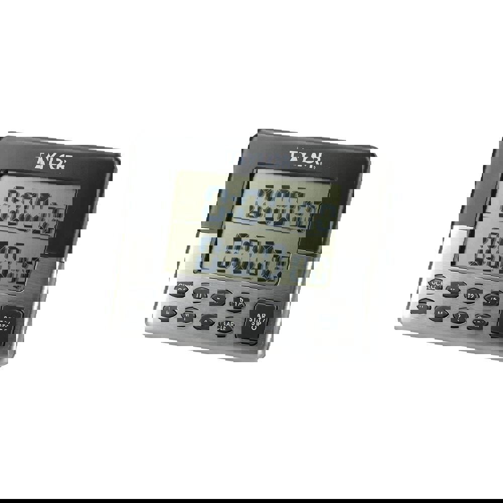 Set two countdowns, to run simultaneously, with just one precision 24 hour kitchen timer. The Taylor Pro dual kitchen timer is *the* tool for perfecting your meal cooking times. It features two timers: 'T1' and 'T2'. They can be programmed separately to count down from completely different times, or together to count down from the same time - up to 23 hours and 59 minutes. The dual functionality makes it much easier to track cooking times for two different dishes, such as roast chicken and steamed vegetables. When the timers hit zero? The unit sounds out a loud ringing reminder. But don't worry - each cooking timer has its own unique ring, allowing you to tell them apart with absolute ease. Includes a five-year guarantee.