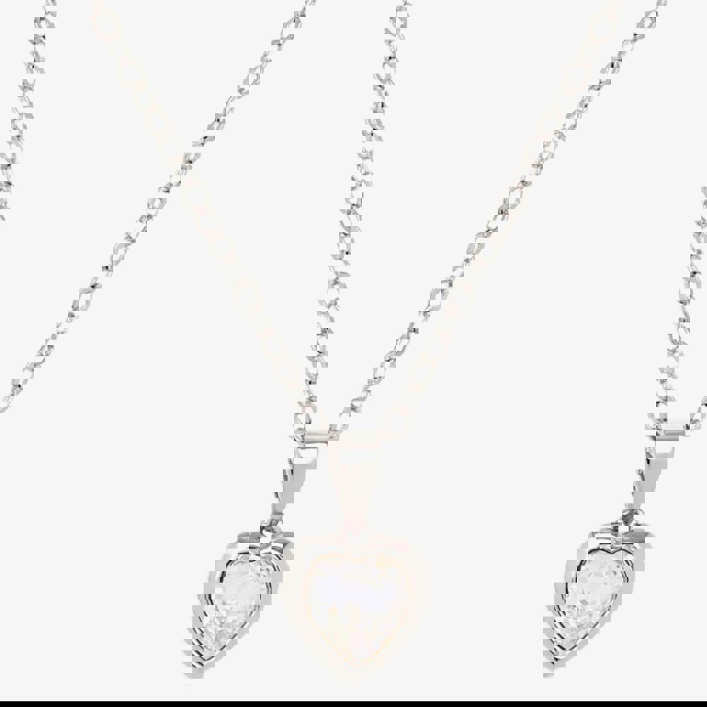 This eye catching pendant features a delicate heart shape and is adorned with a sparkling clear crystal. The pendant sits upon a delicate link chain that can be adjusted for a comfortable fit. Wear individually or pair with similar items from the collection to complete your look.