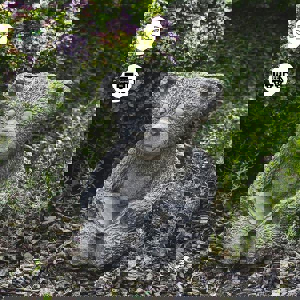 Sweet Teddy Bear reading a book garden ornament with great detail! A charming addition that is perfect for outside in the garden or even indoors! Solid and stone cast, very heavy for the small side. Â This adorable stone cast teddy bear makes a great gift for the inspired reader, teacher, parent, grandparent, and garden enthusiast.