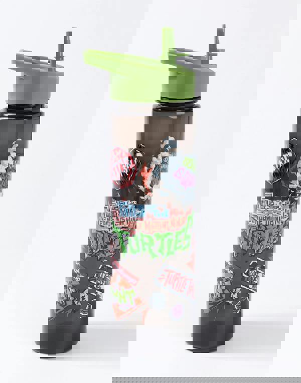 The vibrant green, black, and multicoloured design showcases beloved TMNT characters and includes fun phrases like "Cowabunga!" and "Stop," reflecting the adventurous spirit of the turtles